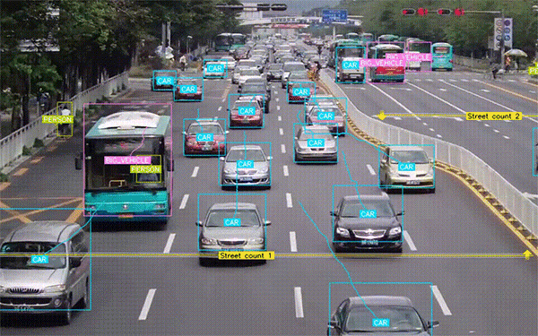 The AI model can track objects in video footage and predict their next location. Object tracking comes in extremely handy for tasks such as monitoring pedestrians or vehicles for security purposes.